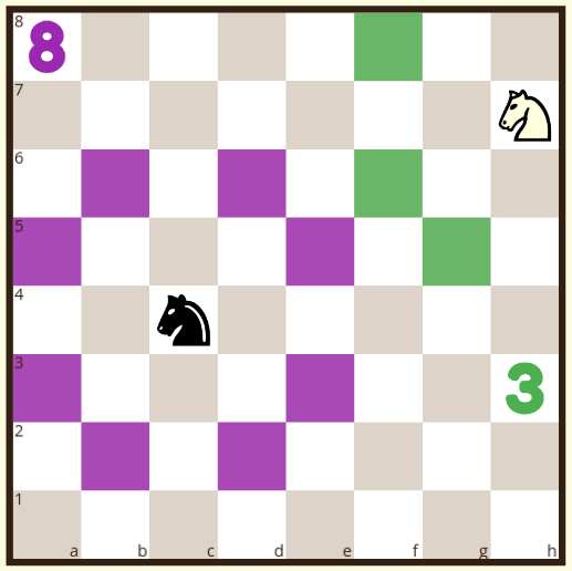 Board 3: The knight is on c4. Which squares does the knight attack? What about if I moved the knight to h7? We talk about how this knowledge might help us find the best position for the rook or the knight?