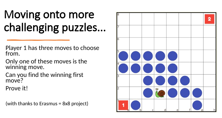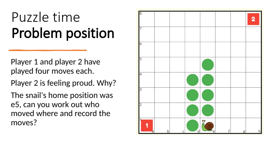 Rita visited my year 5 and 6 students. Her sessions were split into three parts, a slime trail game, a maths and chess investigation and then a chess part. Ideally I’d spend an hour on each part but we wanted them to have a slice of all three. It’s not every day you get an visit from an international chess master!