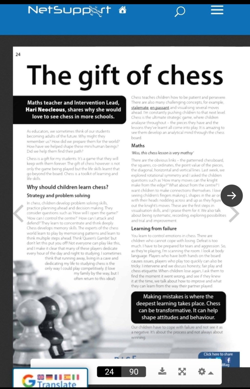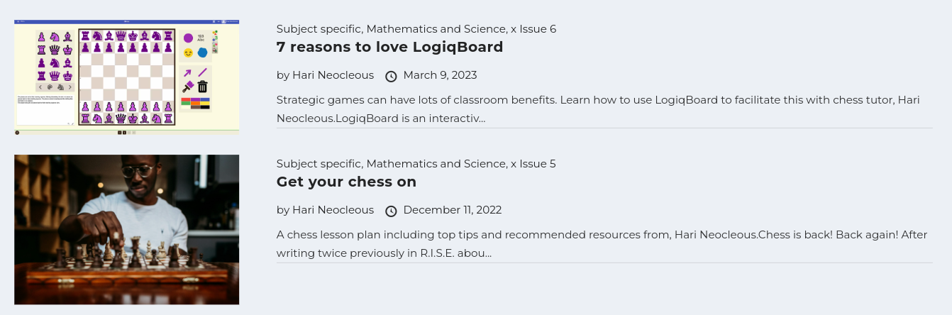 Today’s blog is about R.I.S.E. a brilliant online education magazine and their brand new website. Two years ago I wrote my first ever article about chess called ‘The ‘Gift of Chess’. This will always be my favourite piece. It’s a summary of all my years as a primary school teacher where I tried to squeeze chess into my timetable. Some years it featured more than others depending on my class and workload. In the ‘Gift of Chess’ I talk about the ways chess enriched the lives of my students.