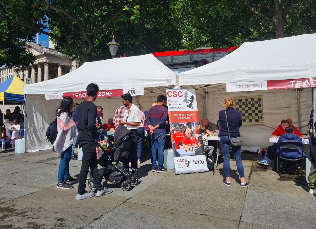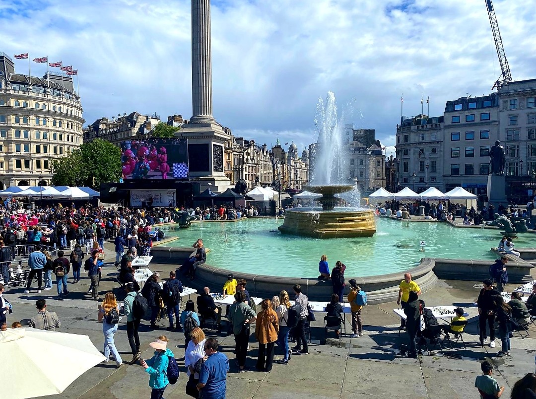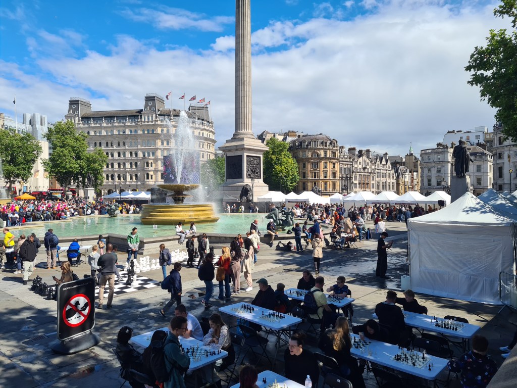 Chess Fest was huge. A gathering like no other. It’s a celebration of all things chess for everyone in London’s iconic Trafalgar Square. You can wander around at your own leisure or be enticed by the magic of chess.
