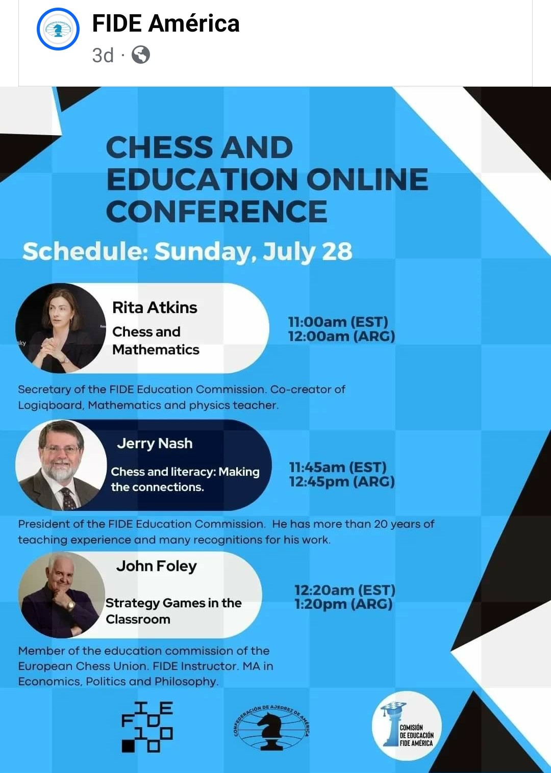 Today’s blog is all about Sunday’s online Chess Education Conference hosted by Fide America. A two-day conference, I was only able to join on the Sunday and I’m so glad I did. It was a great success!