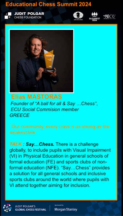 Elias’s own journey will inspire you. A young Fide Master in chess and at 18 a chess coach with his own Chess academy in Panorama, Thessaloniki. As a young teen and chess prodigy he travelled and met some of the greatest chess players. Elias took the coaching path, with a successful Chess academy and a high number of girls (another blog on chess is needed!) he also created Youthorama and works hard to promote chess for the blind and visually impaired.