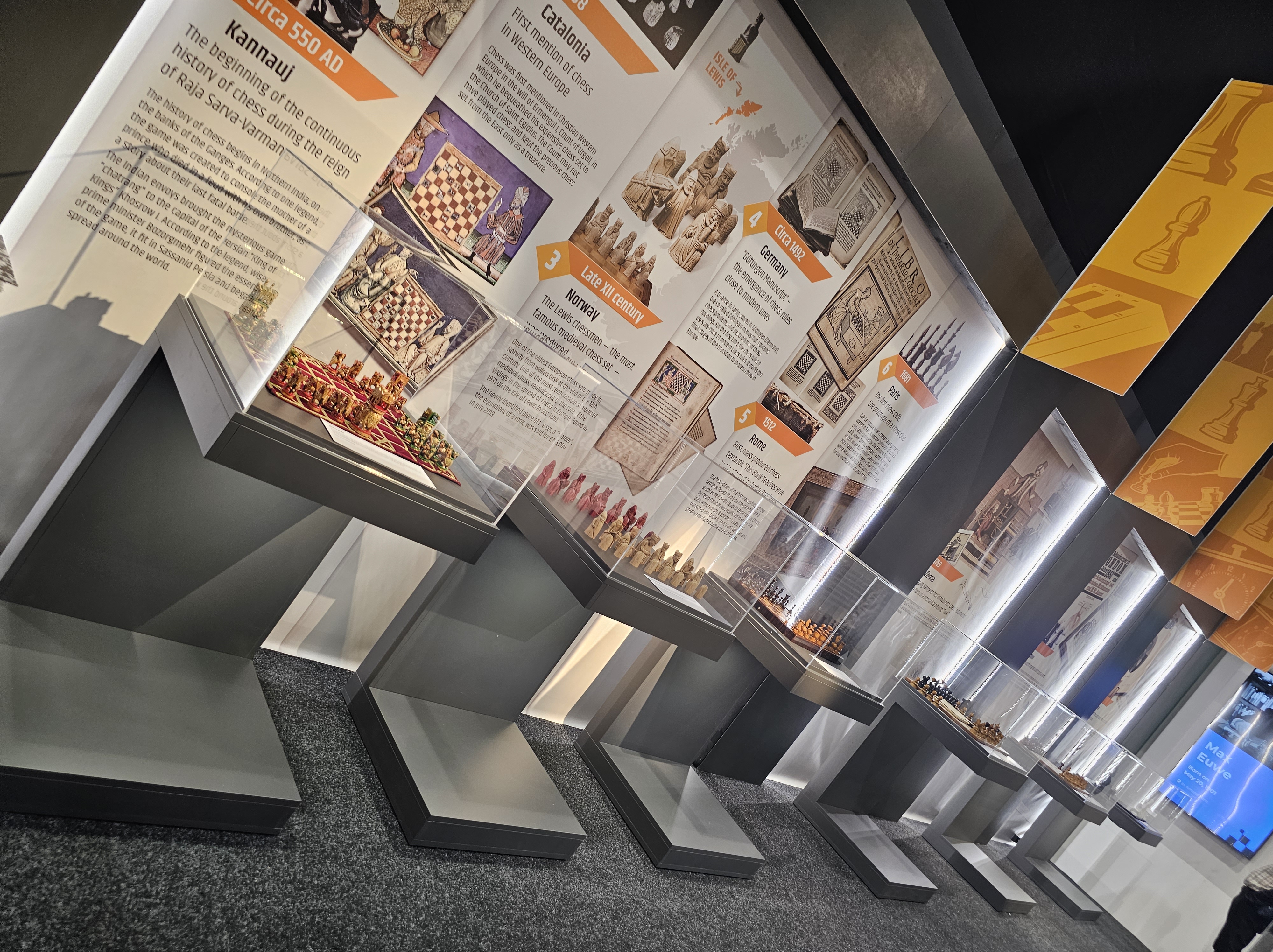 The Fide Chess exhibition at the Bok Stadium was a treat, a wonderful glimpse of the rich history chess has to offer. John Foley (ChessPlus) and I got to see the poster art from previous Olympiads and intricate chess sets from around the world. A mini museum taking us back in time to the origins of chess.