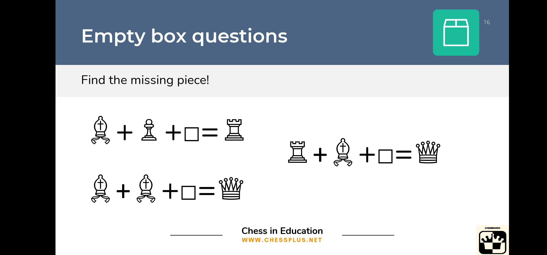 - Add chess themed tasks to your maths lessons.