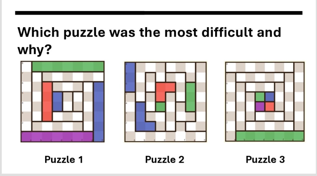 At the end I ask them to reflect…which puzzle was the most difficult and why.