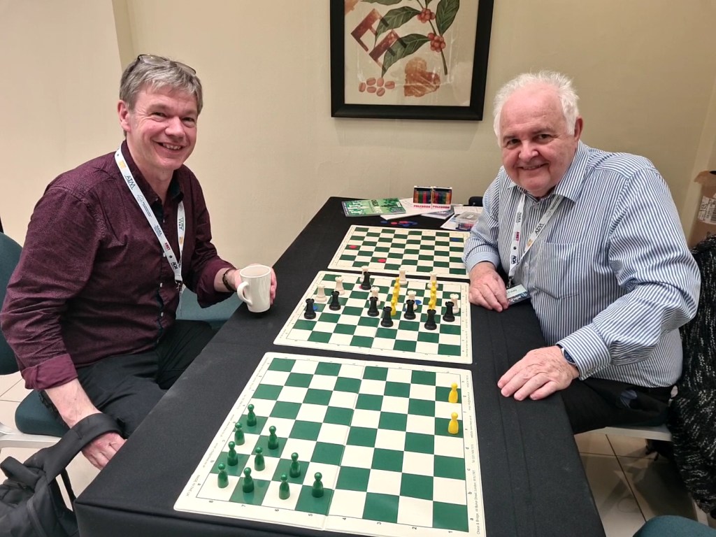 I had the pleasure of seeing them both reunite at the UK Joint Maths Conference last year, where John and I presented. A captured moment of old friends talking chess, maths and Shakespeare whilst playing a game of ‘Sliding Rooks’. ββ