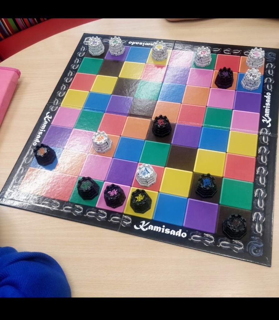 I see Kamisado as a warm up for chess. For me, its like a little teacher assessment into a child’s thinking. Can they focus on their own goal of reaching the other side and play strategically? For example, you don’t want to land on a colour where your opponent wins in the next move!
