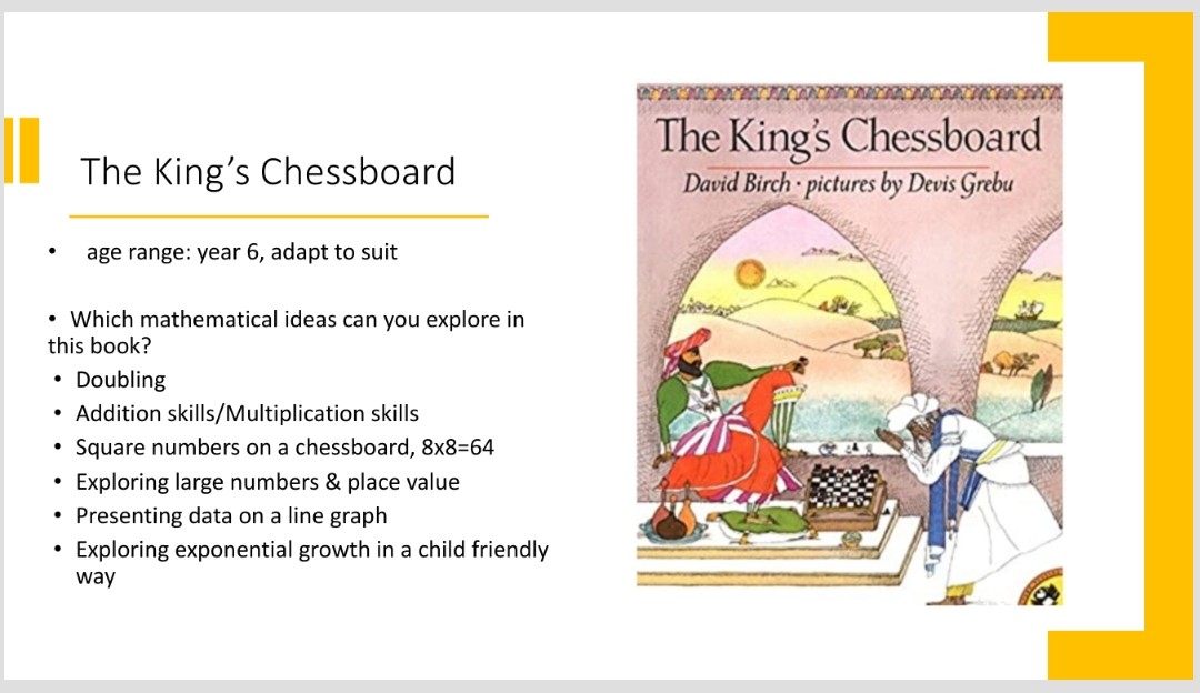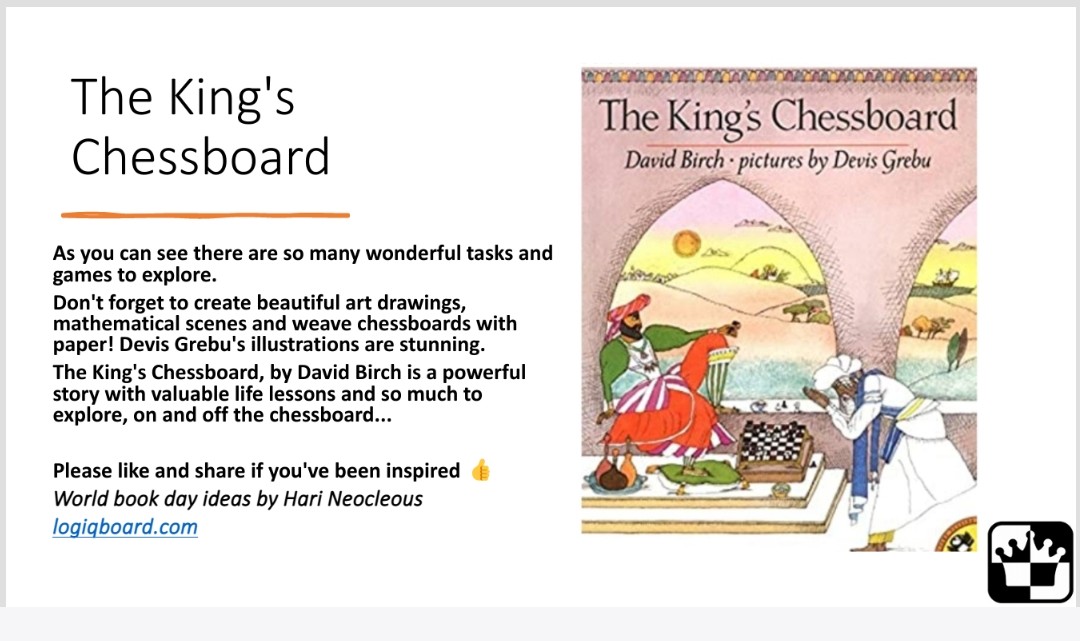 Today I’m sharing a book that I love as a maths teacher and chess teacher. The King’s Chessboard, by David Birch, illustrated by Devis Grebu is a wonderful story for the week.
