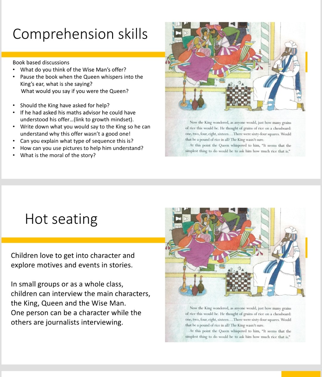 I’m sharing some PowerPoint slides with you. I hope they inspire you to bring chess stories into your classroom.