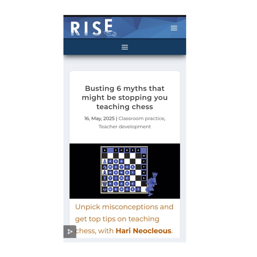 My latest article for Rise Education magazine is aimed at primary and secondary teachers who are curious about starting a chess club. I explore six myths in the hope that I can persuade educators to take a chance with this ancient and beautiful strategy game.