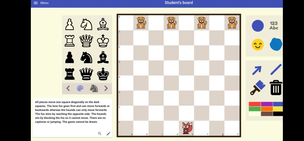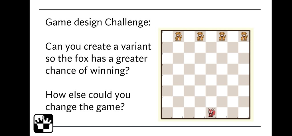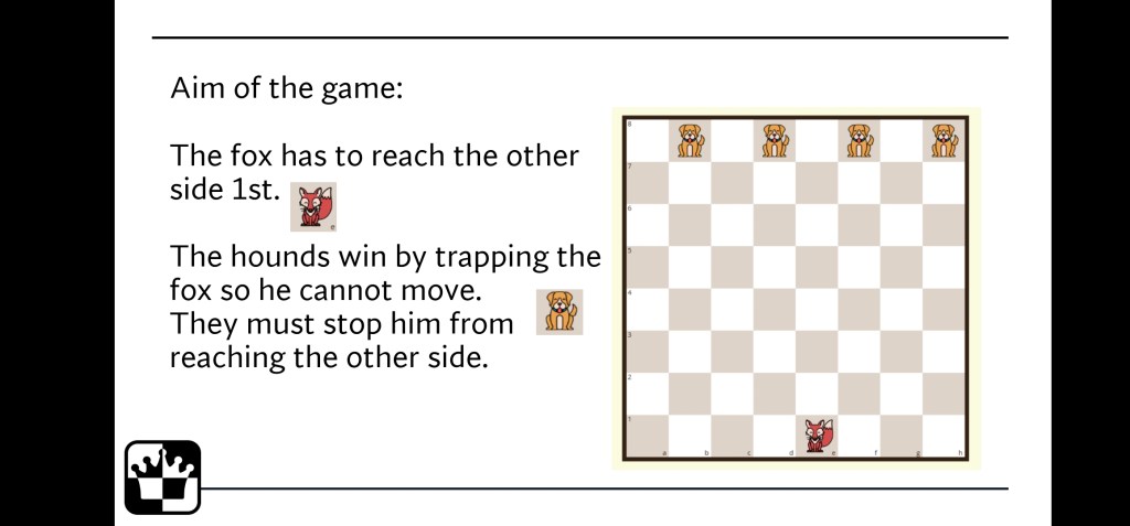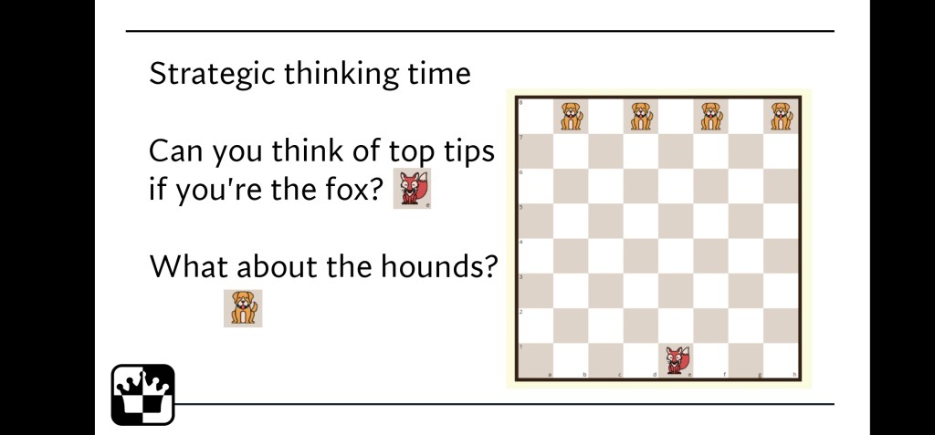 Primary school children should be exposed to a range of strategy games. One enriches the other. Each one brings something unique to the table, literally. With Fox and Hounds I give a brief intro to its history at the start and end with game design.