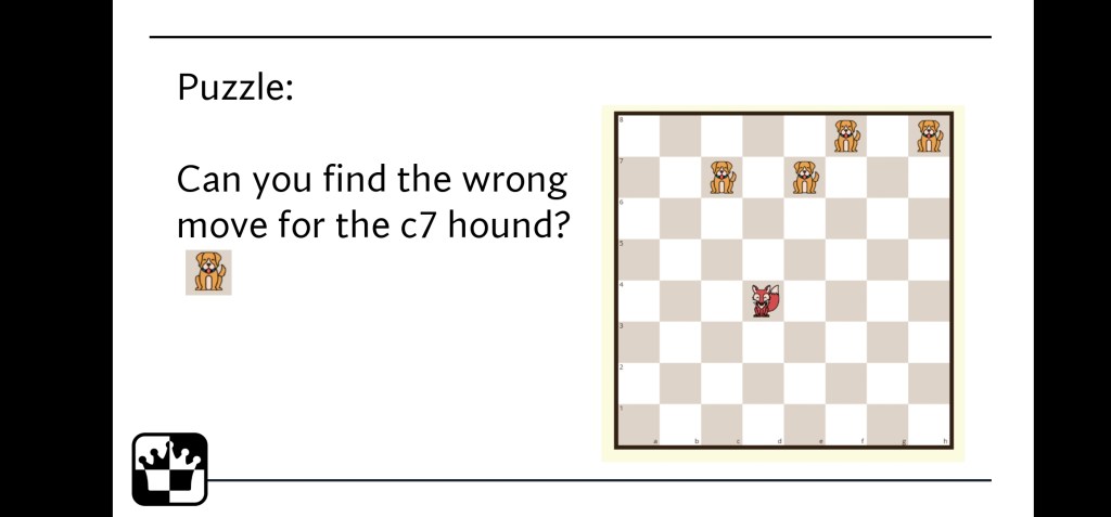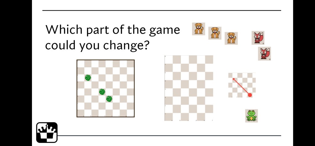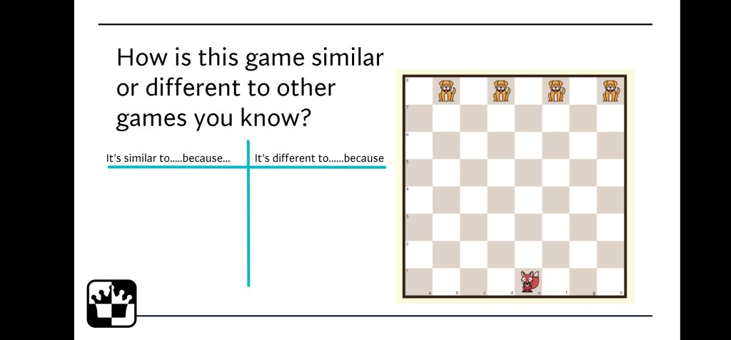 Use Logiqboard.com as a demoboard or add some slides too to support your teaching. Share the rules then give students some time to explore how pieces move. I always do a quick intro followed by some playtime. Let children play early on in the lesson when they’re curious and excited.