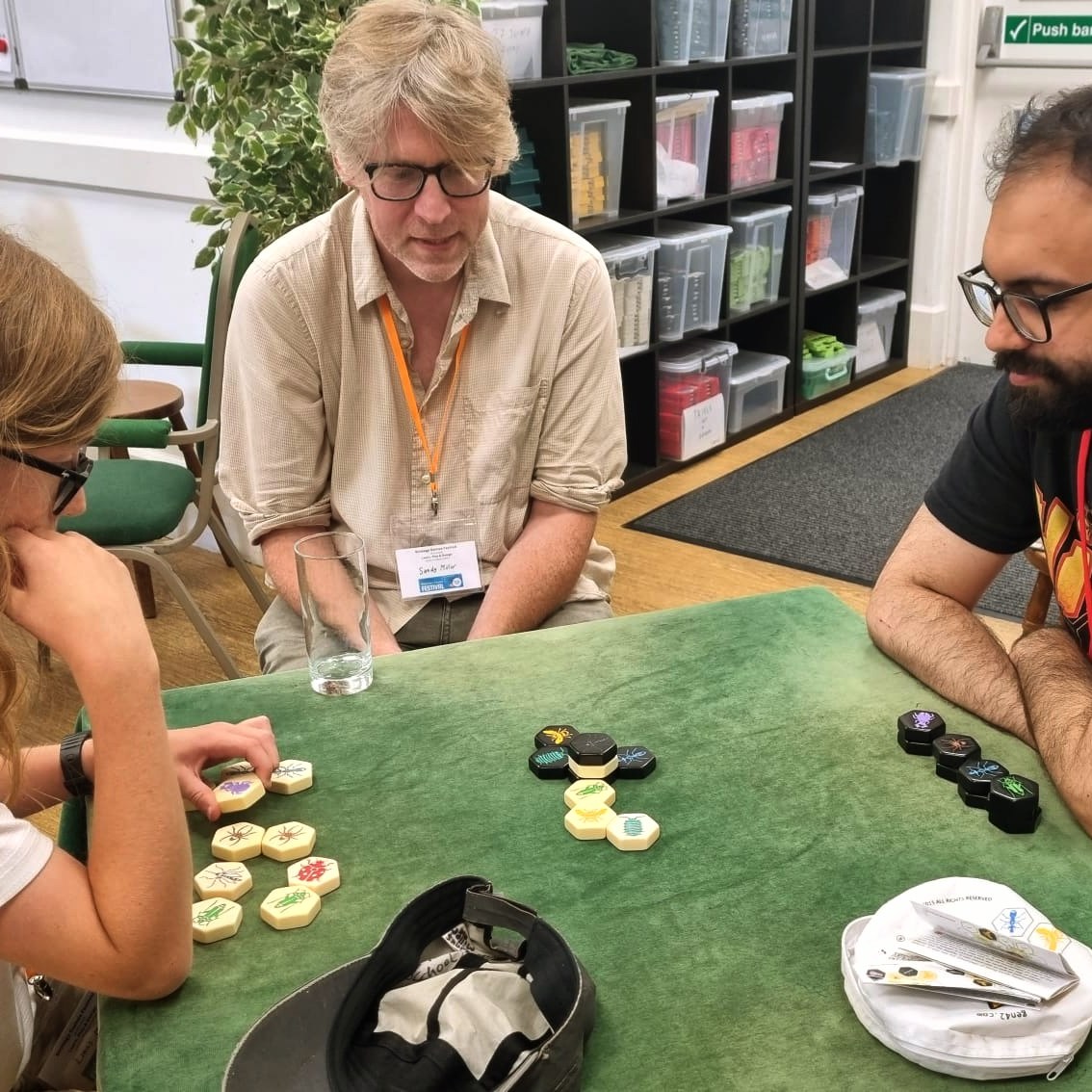 Fransesco was busy teaching the award winning game of Hive throughout the day. I managed to find some time with him. I loved the insect images on each Hive tile, the tactile feel and unique moves of each insect. Fransesco is a patient teacher. 😉