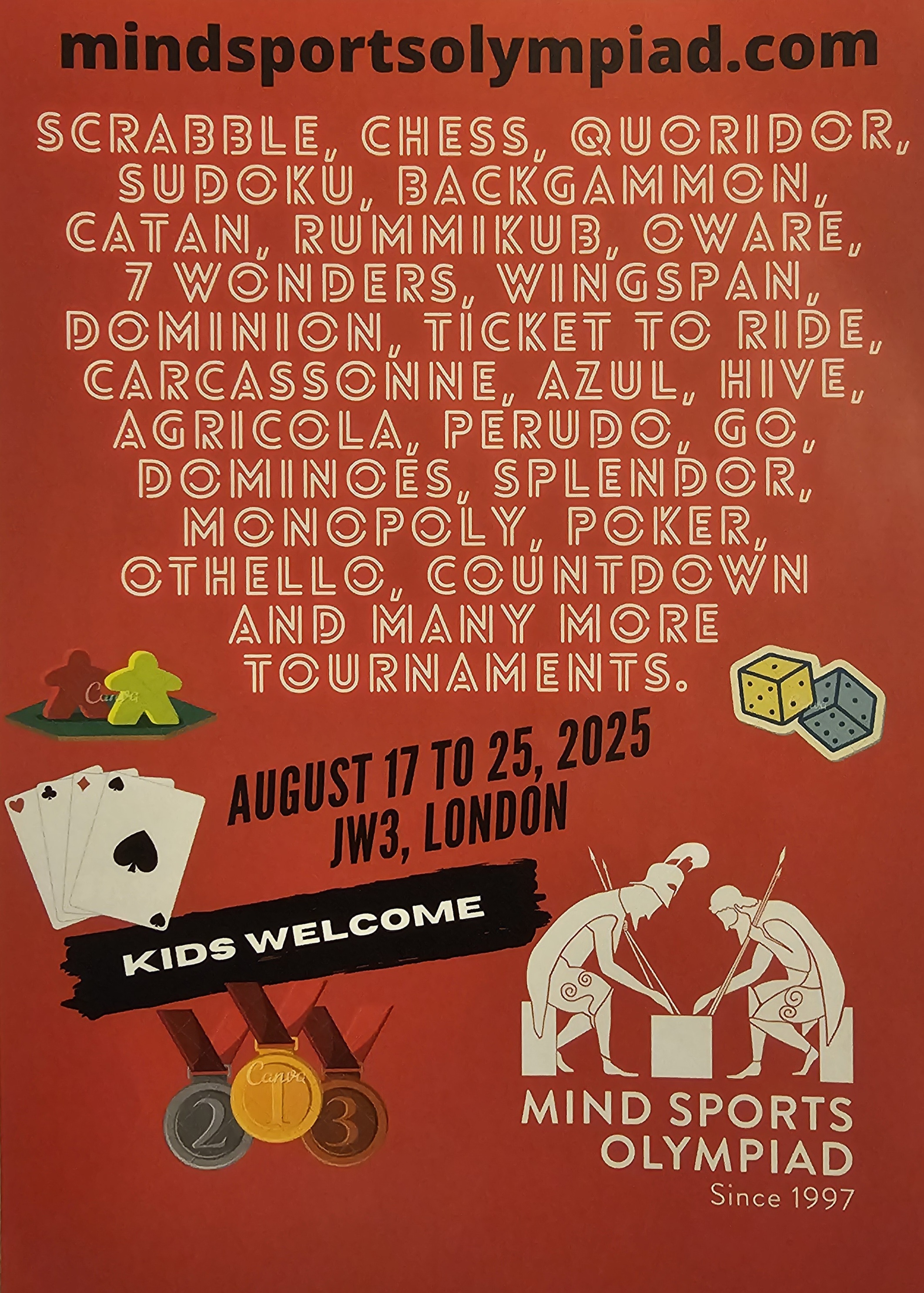 Here’s a fabulous flyer for the Mind Sports Olympiad and picture of the Ancient Greeks playing a strategy game…