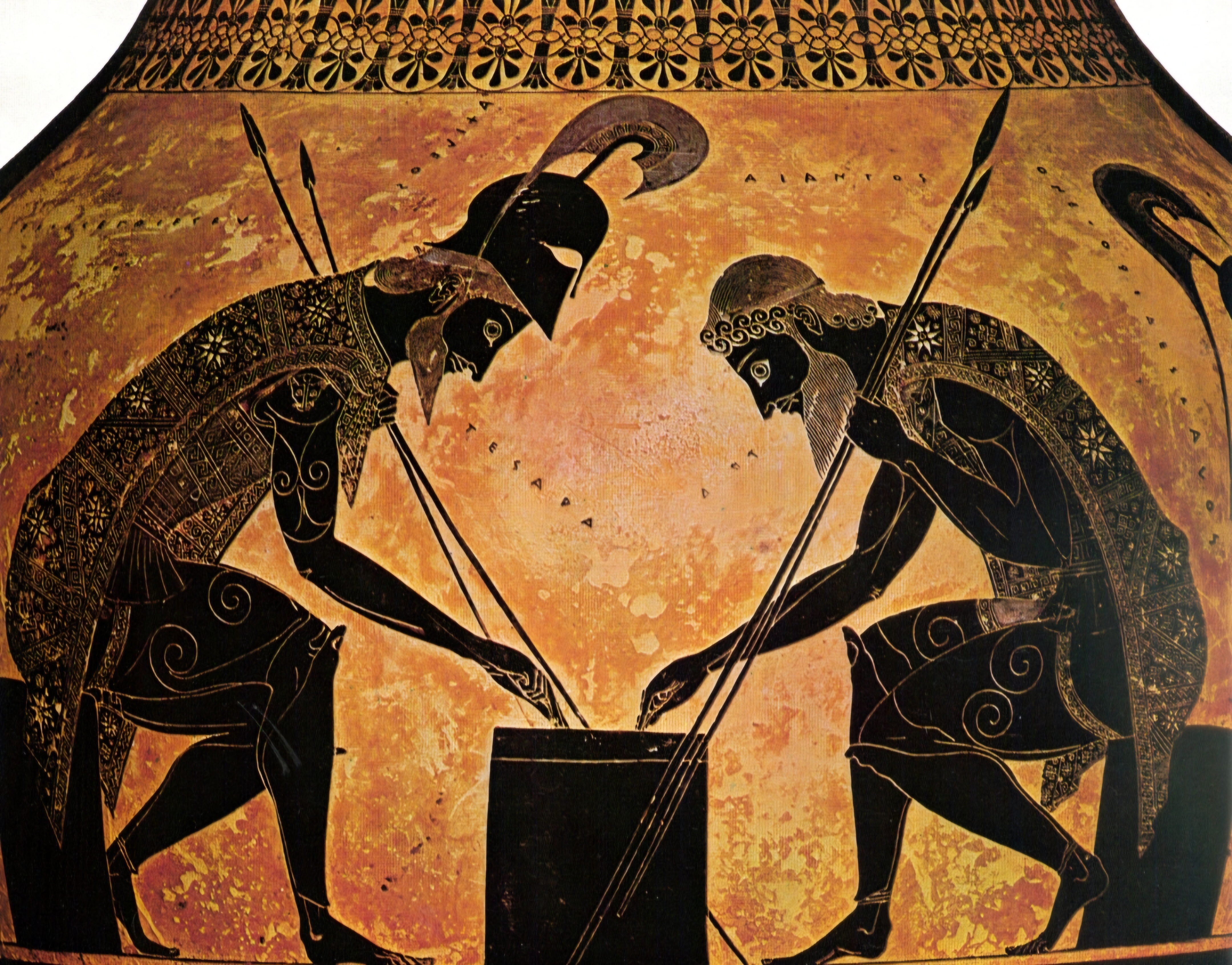 Ajax and Achilles playing a game, Amphora by Exekias, 320 BC