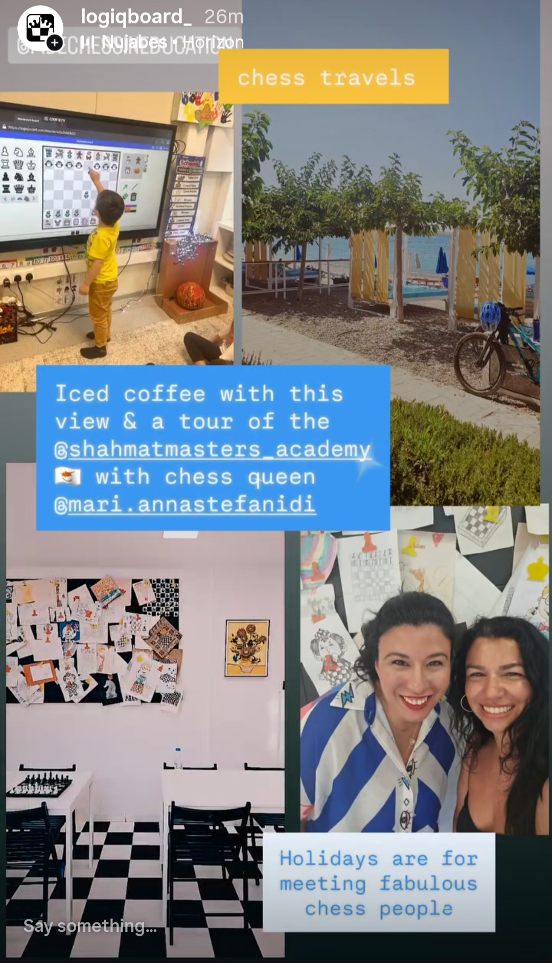 We shared an iced coffee by the sea and a few days later I got to see her in action at her academy. A beautiful setting for chess and STEM. Chess friendships are little gems and Maria-Anna is one of those connections to treasure.
