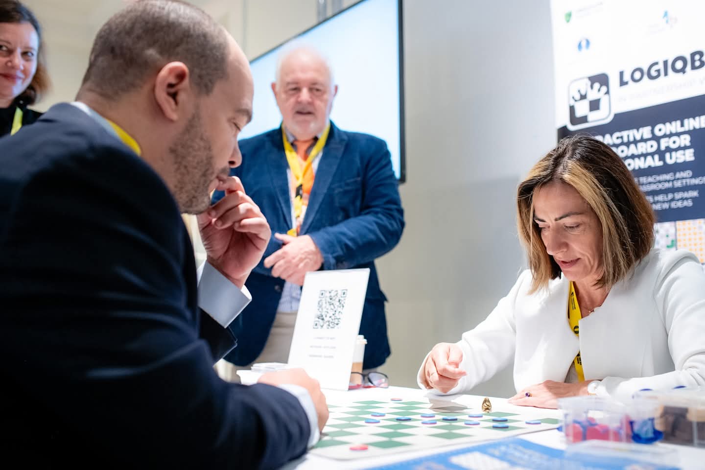 It was a pleasure to see the wonderful Maria- Anna Stefanidi, chess player and director of the Shah Mat Masters Academy in Cyprus. Maria-Anna is a dynamic teacher, promoting both competitive chess and chess in education. She has also been a LogiqBoard fan from day one. Using it with her younger students and now sharing the platform as a Fide trainer on the Preparation of Teachers Course.