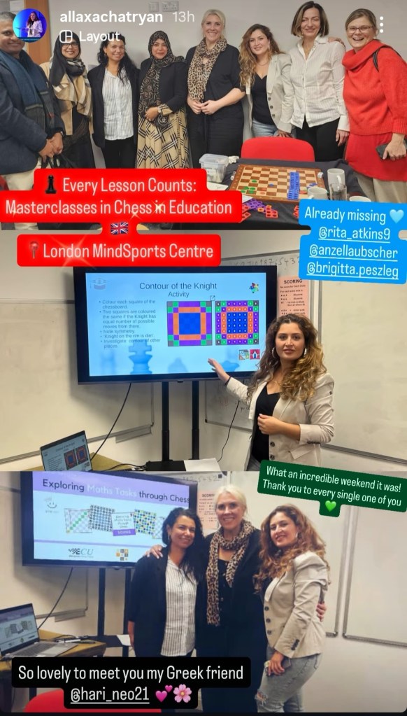 I got to meet Anzel Laubscher and Alla Khachatryan, I watched them present their masterclasses and saw snippets from the FIDE Preparation Of Teachers course which I’ll share below.