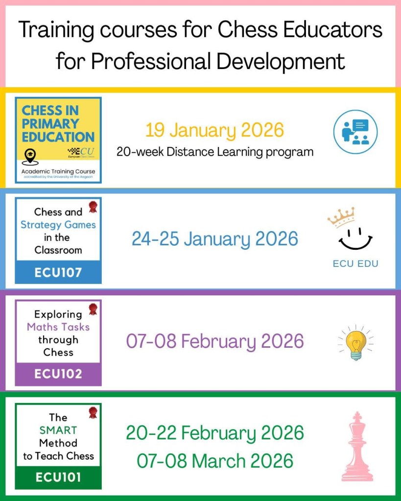 Speaking about being the best chess teacher you can possibly be, don’t forget we regularly share courses from FIDE Education and the ECU Education Commission.