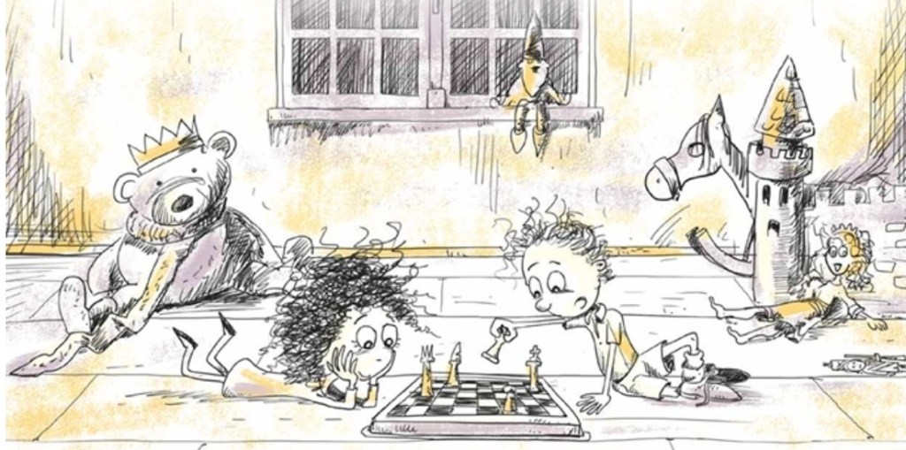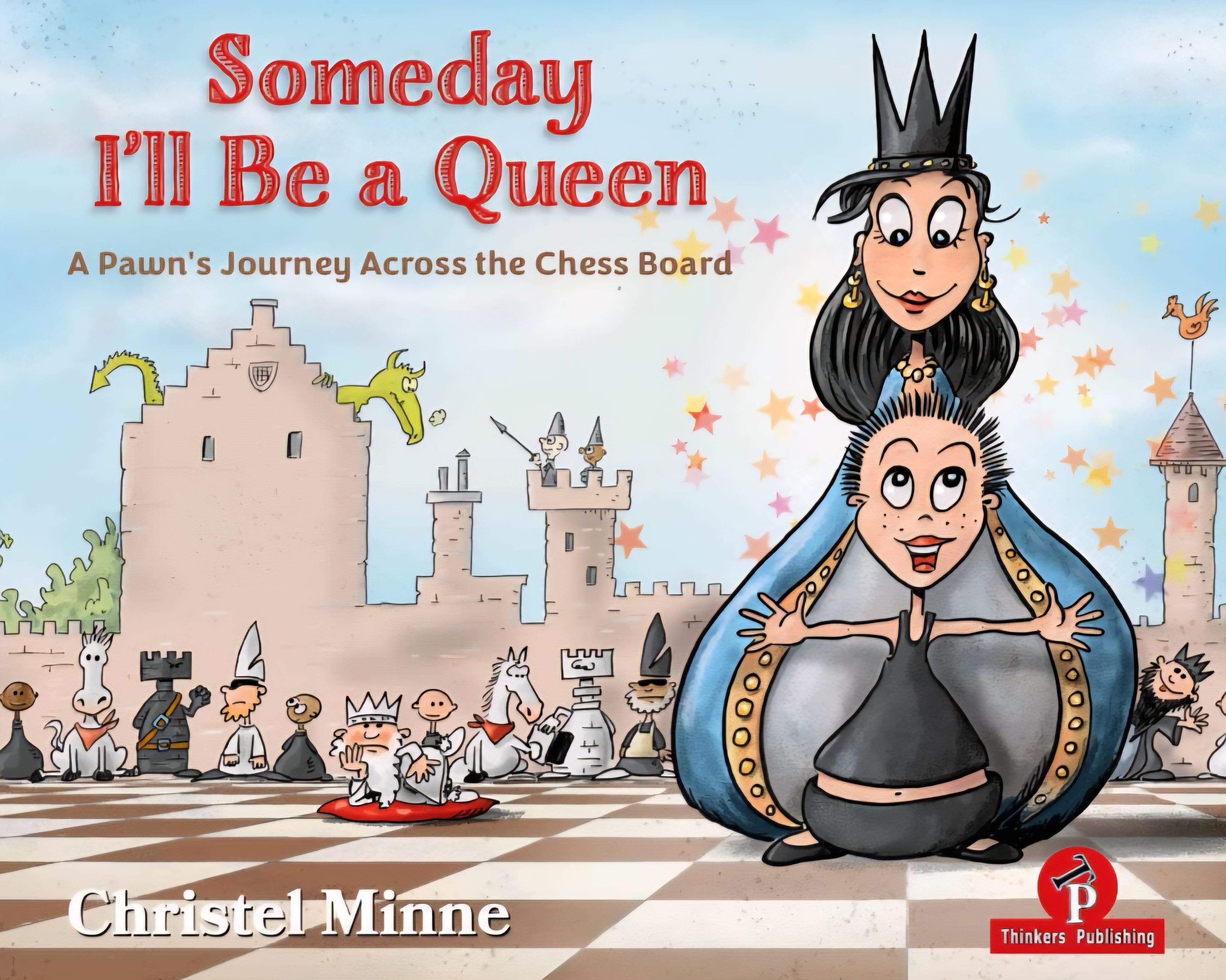 I remember seeing a beautiful book by Christel Minne, Someday I’ll be a Queen, at the London Chess Conference. I was drawn to the illustrations. I messaged Christel on facebook but there were no plans for an English translation back then. I was curious to read her story and learn more about these fun little chess characters shaped as chess pieces created by an artist named Diriq.
