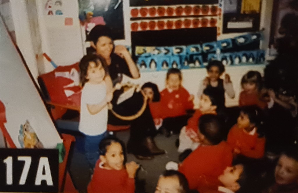 My wonderful classroom assistant Carol and I would re-ennact stories. Oral story telling was just as important as reading picture books.